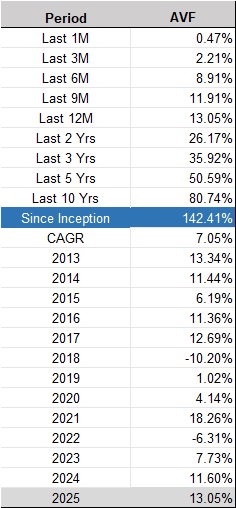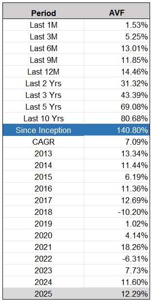 The Aggregate Value Fund (AVF) started off as a diversified deep-value equity fund in 2012, with our hunting ground primarily in Asia. As deep value investors, we employ traditional value metrics like price to net tangible assets, low debt to equity, consistent dividends, etc. Over the years, in our search to better improve strategies and returns, we have dived into the world of machine learning and developed techniques that have enabled us to invest beyond Asia, venturing into the US and European markets in 2021. Today, the AVF is a globally diversified fund, with a tilt towards Asia. The fund is invested in about 1,000 listed companies across 17 countries. Our goal is to provide investors with a relatively stable platform delivering average net returns of 7–9% annually.