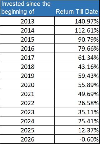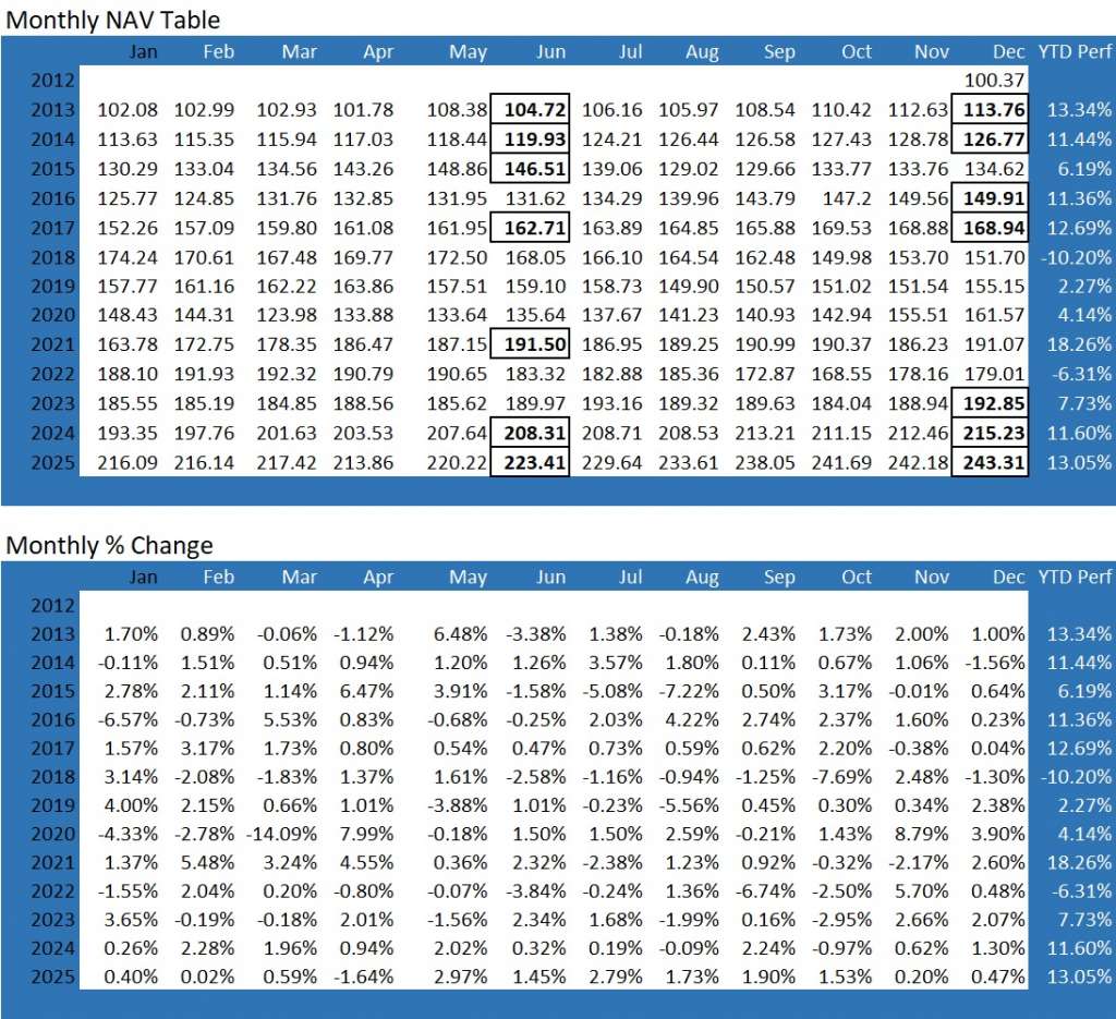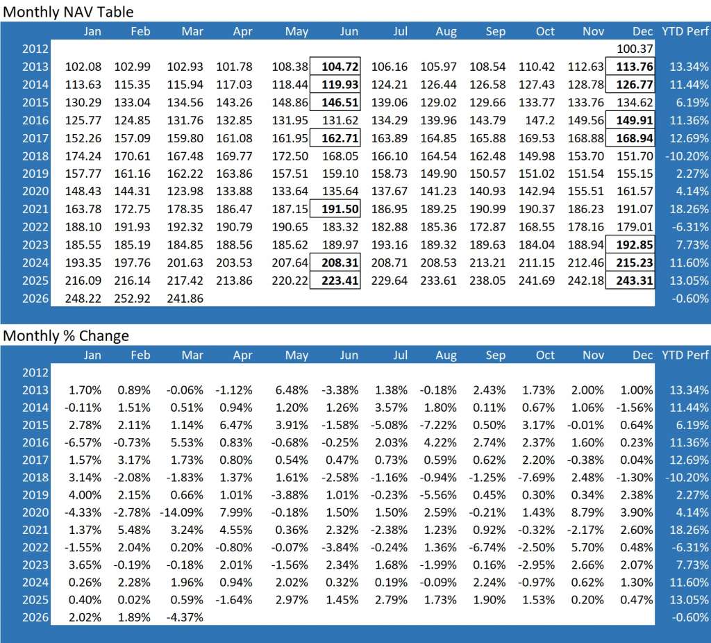 To download the month to month NAV and index data please click here
