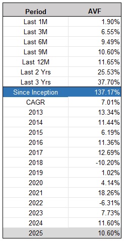 The Aggregate Value Fund (AVF) started off as a diversified deep-value equity fund in 2012, with our hunting ground primarily in Asia. As deep value investors, we employ traditional value metrics like price to net tangible assets, low debt to equity, consistent dividends, etc. Over the years, in our search to better improve strategies and returns, we have dived into the world of machine learning and developed techniques that have enabled us to invest beyond Asia, venturing into the US and European markets in 2021. Today, the AVF is a globally diversified fund, with a tilt towards Asia. The fund is invested in about 1,000 listed companies across 17 countries. Our goal is to provide investors with a relatively stable platform delivering average net returns of 7–9% annually.